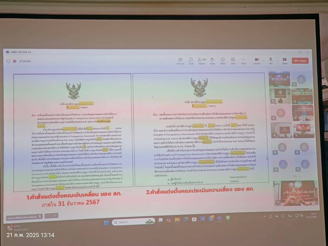 มองหมายให้ พ.ต.ท.หญิง พัชษนา สุขินี สว.อก.ฯ หัวหน้าผู้รับผิดชอบITA ประจำปีงบประมาณ2568 พร้อมเจ้าหน้าที่ITA ทุกสายงาน ร่วมอบรมโครงการ ITA ประจำปีงบประมาณ 2568 - พร้อมวางแผนงานให้แก่เจ้าหน้าที่ผู้รับผิดชอบทุกสายงาน และรับการอบรมด้วยระบบการประชุมทางไกลผ่านระบบVDO Conference